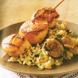 To Serve: Place the risotto on serving dishes and remove the scallops from the skewers. Place the scallops atop Mushroom Risotto and serve.